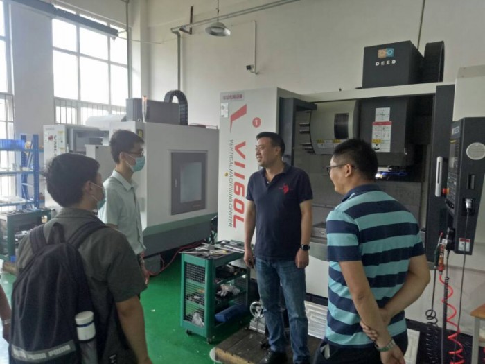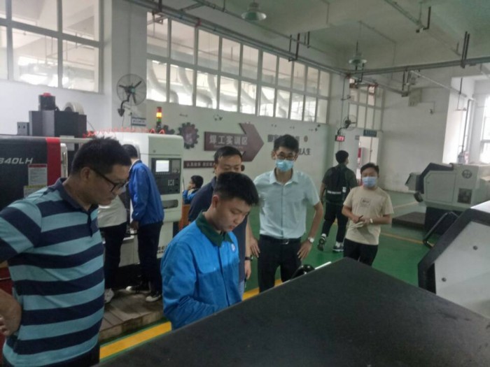 在机械实训基地考察数控设备实训场地及学生实训情况后,王波对我校数控专业申报数控车铣加工和多轴数控加工证书考证实际情况进行硬件设备、软件设备梳理;并介绍今年本专业1+X证书师资培训具体要求和落实方案。
