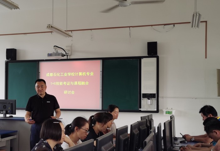 为认真贯彻“职教20条”,积极推进 “1+X证书制度”落实,实现“课证”融合,5月20日上午,我校学前信息科计算机专业召开了“1+x技能证书与课程融合”研讨会。会议由教研组组长主持,学前信息科科长杨志强、教学副科长及计算机组全体老师参加了会议。