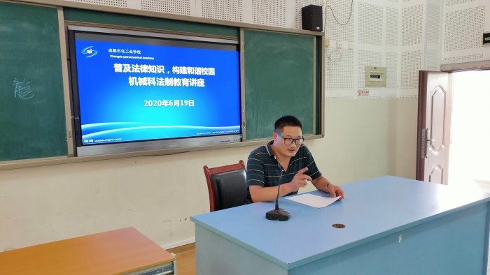 为增强学生的安全意识,提高学生的法律意识,普及《中华人民共和国民法典》,营造文明、安全、和谐的校园育人环境,6月19日,我校机械科在107会议室开展了法制教育讲座。