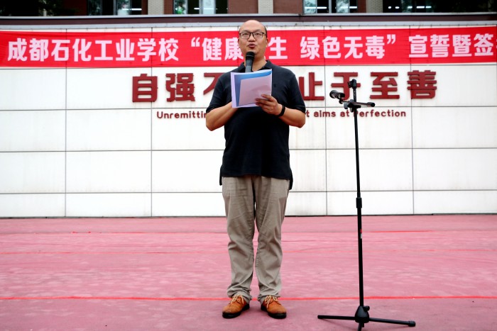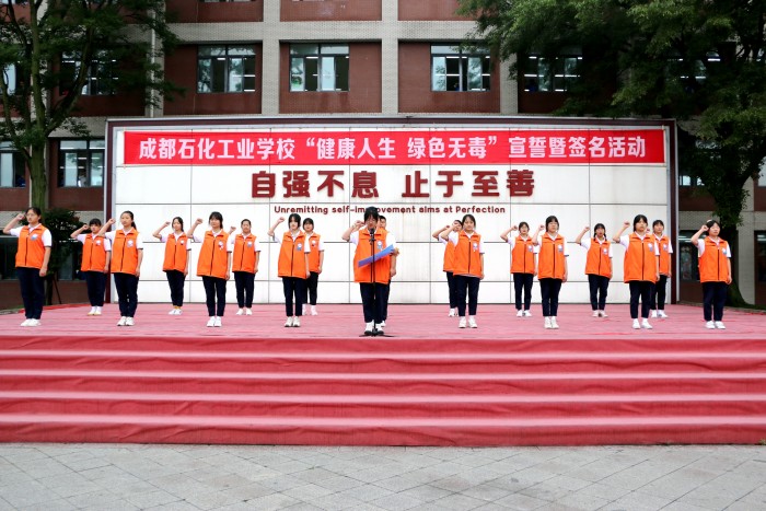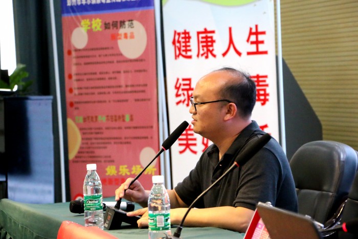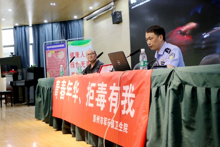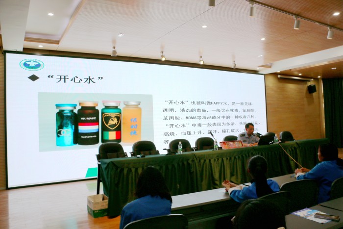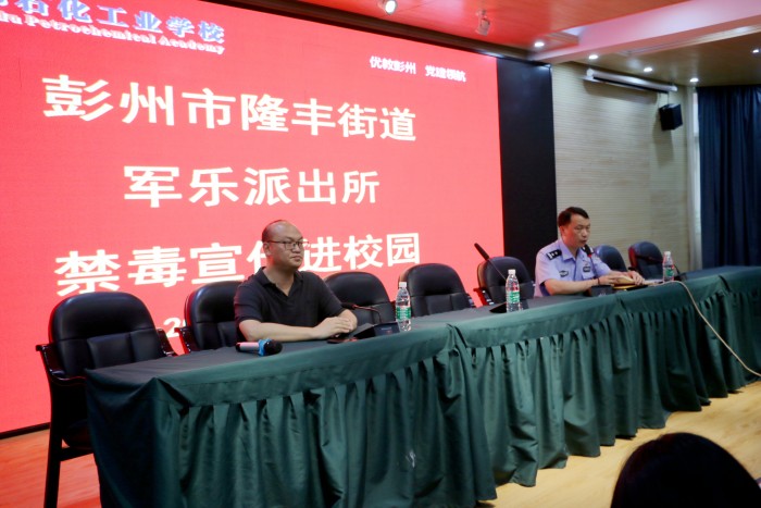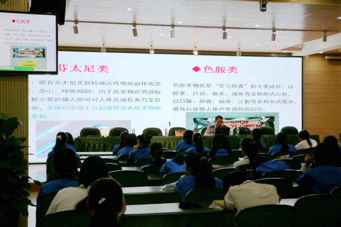 6月18日下彭州市禁毒委员会、彭州市隆丰街道军乐派出所联合我校开展了一《无毒青春·最美芳华》为主题的禁毒宣传教育活动。彭州市禁毒委员会禁毒义工、彭州市军乐卫生院医生、军乐派出所及我校各专业师生代表在多功能厅参与活动。活动现场摆放了多个禁毒宣传展板,毒品实物展示,工作人员向我校师生发放禁毒宣传资料和禁毒倡议。军乐派出所所长蔡统勇作了专题讲座,通过视频、图片、真实案例的讲解,让我校中职青年深入了解了毒品知识、认清了毒品危害,消除了在毒品认识上的误区,让“远离毒品”的观念深入人心,大大提高了师生对毒品的防范能力,为青年学生远离毒品、健康成长营造了良好环境。活动中蔡所长和我校领导还现场寄语小化石们,希望他们认真学习禁毒知识牢牢保护好自己,发挥小主人的作用,在家庭中传递禁毒知识,保护好家人,争做“禁毒”小卫士,共同助力全面禁毒。