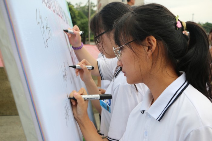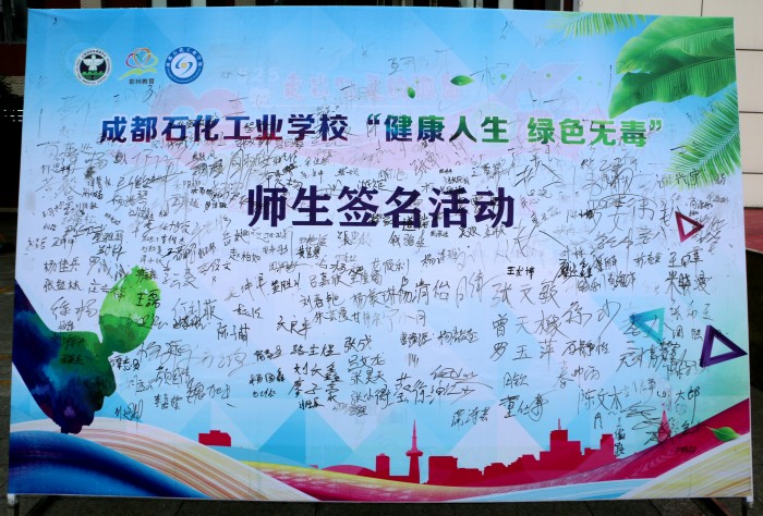 在润行服务班同学的带领下,全校同学在运动场、各班进行了庄重的禁毒宣誓,宣誓结束后老师、同学们郑重的在签名墙上签下名字,表达了不为毒魔诱惑,珍惜生命,拒绝毒品的坚强决心。
