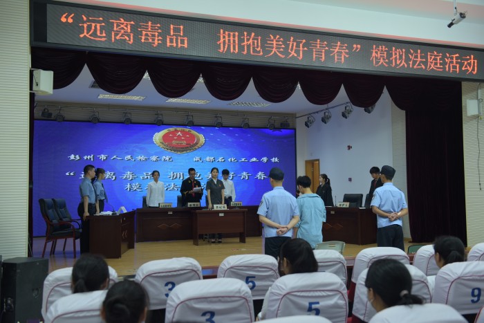 2020年6月23日,我校联合彭州市检察院在我校开展了“远离毒品,拥抱美好青春”禁毒模拟法庭直播活动。在模拟法庭庭审中,我校9名青年学生模拟扮演法庭角色,真实呈现了庭审准备、公布开庭、庭审检查、法庭辩论、法庭调解、合议庭评议、公布判决等诉讼程序,以案释法、以案析理,不仅让他们及观摩的同学在模拟法庭中学习了有关禁毒的法律知识,了解了司法审判程序,同时也更深刻的认识到毒品的危害。通过让学生亲自参与真实案例的模拟开庭审理,切身感受法律的庄重威严、公平公正。禁毒“模拟法庭”,使我校学生深刻认识、理解毒品问题对个人乃至社会发展带来的危害,从生理和心理上建立和巩固对毒品的防线,珍惜生命,远离毒品,完善人格,促进自我的健康成长。