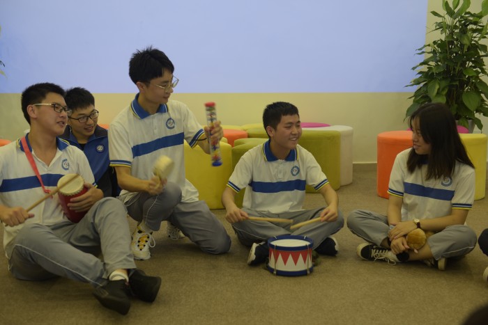 同学们围坐在一起,聆听葛老师的讲解,不时会心一笑,或露出茅塞顿开的表情,同时积极配合参与互动游戏。葛老师现身说法,从自己准备辅导活动也产生了焦虑和压力说起,指出考前有一定焦虑和压力是正常情况,大家应该“接纳”这一客观事实,不必过于在意。葛老师从心理学角度阐述分析,指出适度的焦虑和压力可以让大家发挥出更好的学习成绩,同时介绍了几种调整心理状态的技巧与方法,并现场演示,指导同学们一起训练,让他们最大程度地掌握了这些常见技巧方法。讲解后,葛老师还带领同学们进行了考试主题的沙盘演练,在轻松的氛围中,同学们热情参与,脸上洋溢着开心的笑容,释放近期高强度学习和临考的内心压力,缓解紧张焦虑的情绪。