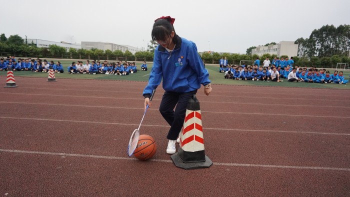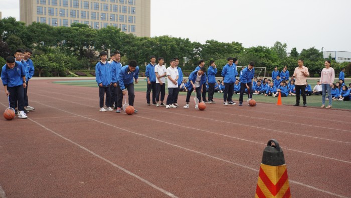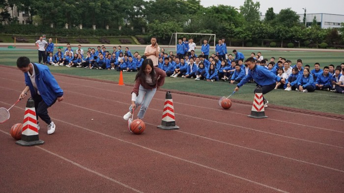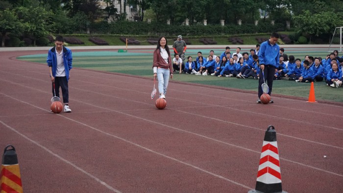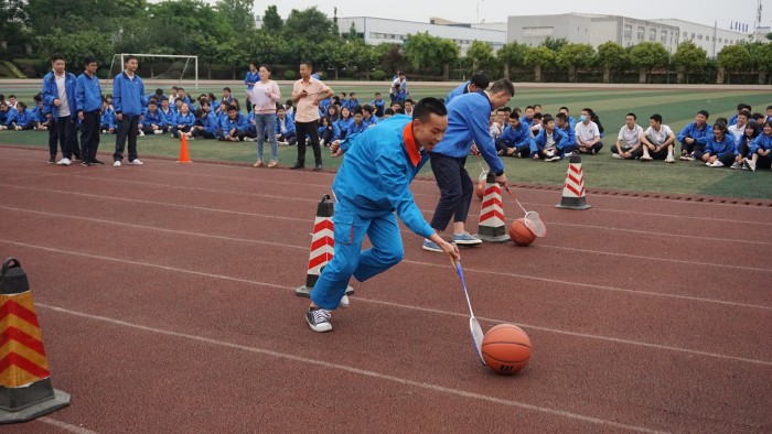 该项目练习持物控球跑,锻炼学生手脑协调性,既锻炼了身体,也给学生带来了快乐。部分老师也参与其中,和学生互动比赛,让学生感受到团队协作的重要性,同时也拉近了师生的距离。
