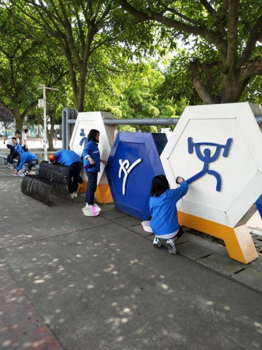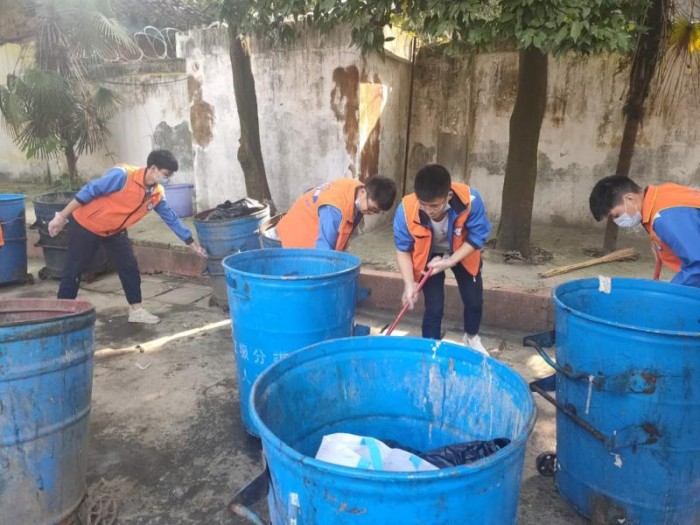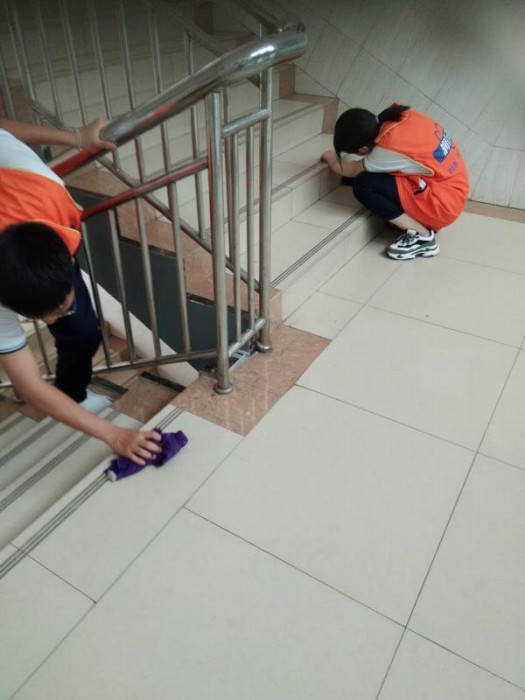 活动由政教处卫生办老师、学校教官及生活老师带队,将学生分为四组对学校的死角区域进行了大清扫。打扫内容有:楼道蜘蛛网、地面瓷砖黑色印记、文化作品、垃圾池清理、学生公寓出口棚顶等区域。