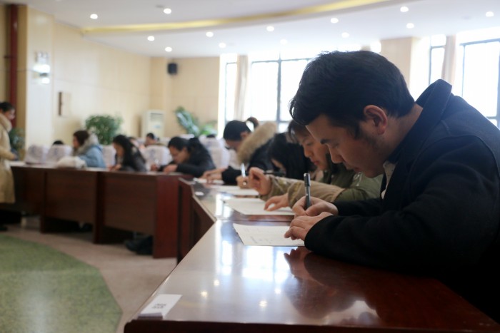 本届班主任基本功比赛由笔试笔试(主题班会方案设计、相关理论知识测试两个赛项)和面试(教育故事演讲、模拟教育情景答辩两个赛项)组成,共2个大项,四个小项。71名参赛班主任分别参加了涉及国家政策法规、教育基本理论、德育实践经验为主要内容的理论测试,同时撰写了以《弘扬工匠精神,做好职业生涯规划》主题的班会教案设计,并参加了由六个专业科首先组织的教育故事演讲、模拟教育情景答辩的初赛,推选出19名班主任参加最后的面试决赛。