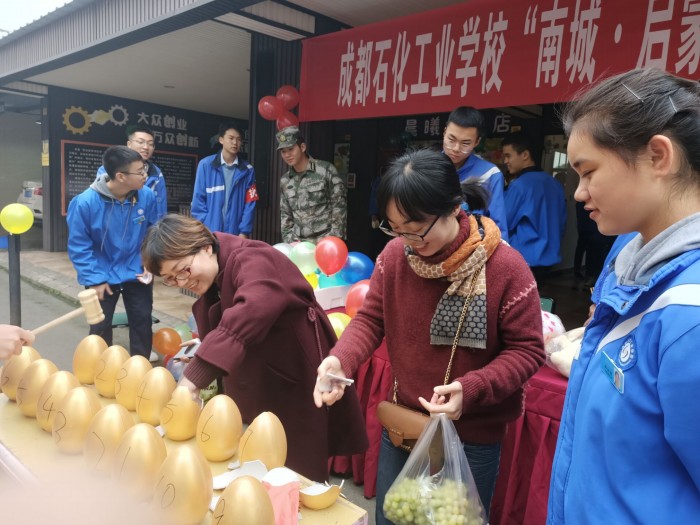 为提升活动效果,提高大家参与的积极性,本次活动设计了购物抽奖和游戏互动两个部分。消费者在各店铺消费购买相应商品后,即可凭抽奖卷到抽奖区参与抽奖,获取精美的奖品;也可到游戏互动区参加砸金蛋、套圈、准打气球、快吃柠檬等互动游戏,通过参加游戏比赛,评选名次,获取奖品。整个活动持续了一个小时,吸引了近100余名师生参与其中,直到活动结束,很多同学还迟迟不愿离去,现场气氛热情高涨。