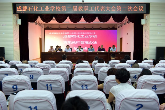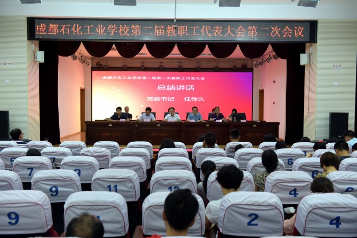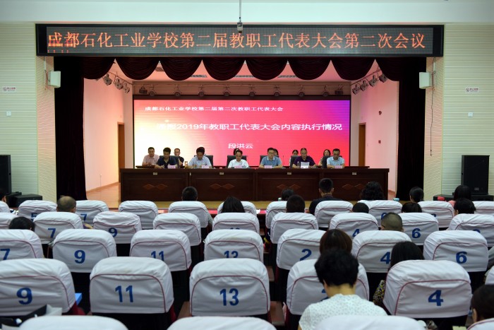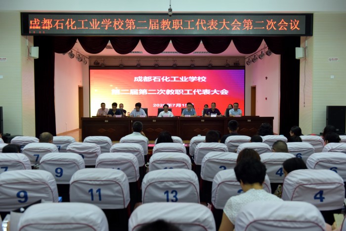 7月15日,成都石化工业学校第二届教职工代表大会第二次会议在南校区学术报告厅隆重召开。会议由学校党委副书记、工会主席段洪云主持,全体教职工代表出席会议,非教职工代表的行政干部、民主党派人士、“两代表一委员”列席本次会议。