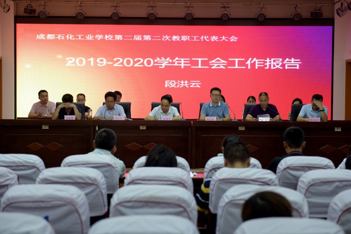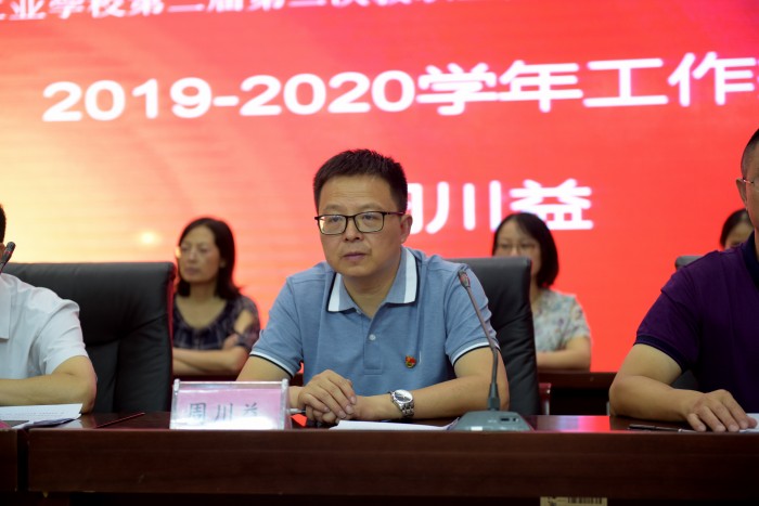 第二项议程,党委委员、校长周川益同志作《成都石化工业学校2019-2020学年工作报告》,以“多措并举彰显‘示范’品牌,稳中求进释放职教活力”为主题,全面总结了学校这一学年各方面工作所取得的成绩,分析了存在的不足,并部署下学年学校的主要工作。