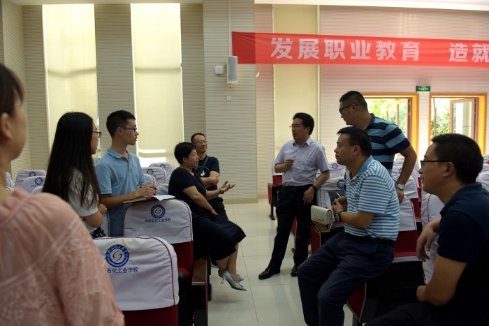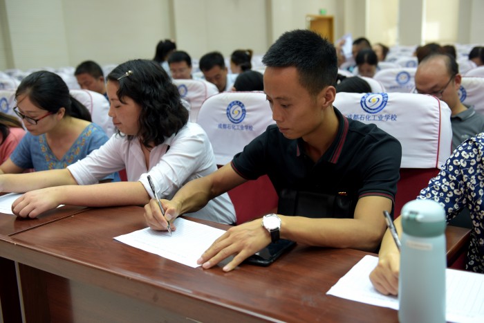 第五项议程,党委委员、副校长黎定成对《成都石化工业学校中小学高级教师管理办法(草案)》作说明。