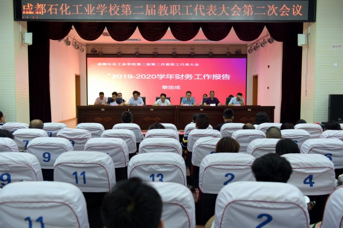 第四项议程,党委委员、副校长黎定成作《成都石化工业学校2019-2020学年财务工作报告》,对学校一年来的经费收支情况进行说明。