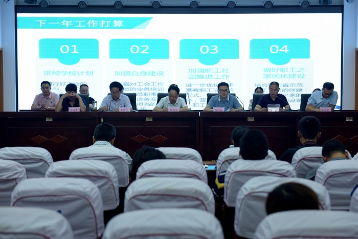 第三项议程,党委副书记、工会主席段洪云作《成都石化工业学校2019-2020学年工会工作报告》,回顾总结这一学年工会的各项工作,指出下一学年工会的主要任务,着重强调工会下一年要以学校整体安排为导向,进一步细化工会工作安排,有针对性开展工作,履行好工会的参与、维护、建设、教育“四大职能”,加强职工社团推进工作,做好职工之家优化建设,开展好常规工作,为学校发展作出贡献。