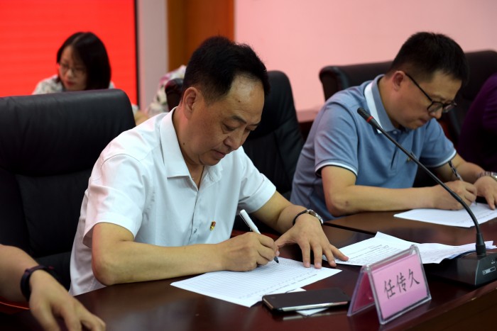 第七项议程,民主评议学校行政干部,各位代表对学校行政干部的德、能、勤、绩进行了综合评议。