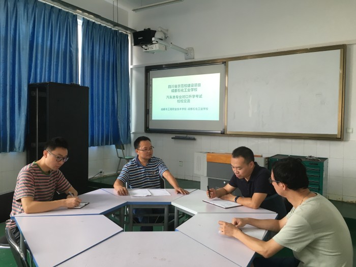 在下午的指导交流中,韩超指出在今后的工作室建设中应当以学生、年轻教师为主体,领衔人起好统筹作用,用工作室的支撑,为学生和年轻教师的成长开辟新的空间。他建议通过两个工作室的交流,增进彭州与青白江在职业教育的互动,特别是今后的汽车专业对口高考方面,车身修复技能大赛方面加强沟通交流,达到互助成长之目的。工作室成员王皓、许正东分别从示范校建设项目中“1+X”证书制度与人才培养方案融合方式和途径、汽车类专业对口升学考试等内容进行了交流。