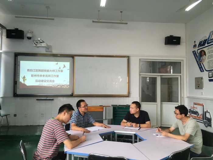 日前,彭州市名师工作室领衔人余冬及部分技能大赛指导教师成员与青白江技能大师工作室领衔人韩超就如何发挥彭州职教余冬名师工作室在指导学生技能训练、引领年轻教师成长、建设优质示范校项目、职业教育精准帮扶中的辐射作用等方面进行了深入交流。