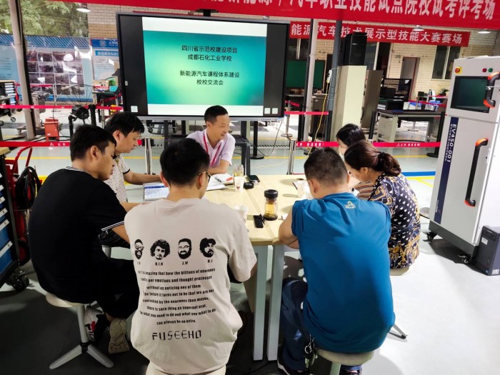 汽修组利用假期进行了新能源汽车网络课程的前期思考和梳理工作,将网络课程建设中遇到的问题进行归纳总结,并有针对性地到龙泉汽车职业技术学校进行了调研并请专家徐利强进行指导。