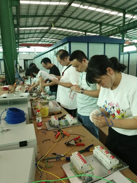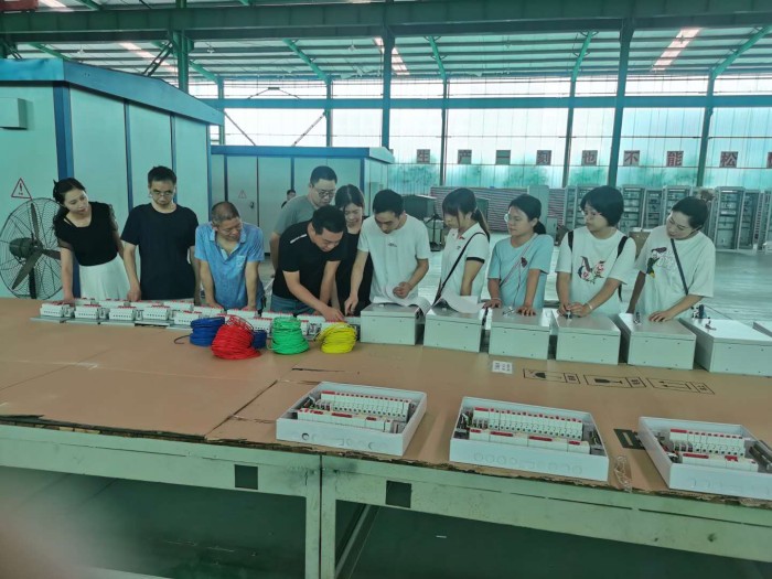 电子科专业课教师在成都鑫新光成套电器设备有限设备公司实践锻炼。教师深入一线,从事配电箱模块安装和标准布线工作,针对低压开关柜制造过程中的设计、元件选型、元件排布、元件安装、配线等生产工艺流程进行学习和实践。