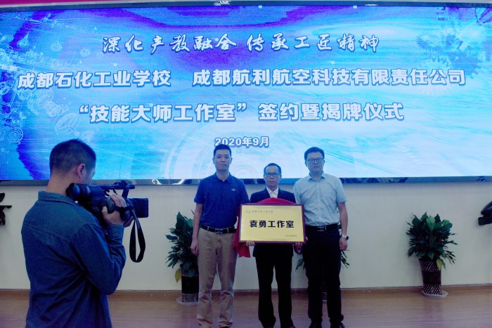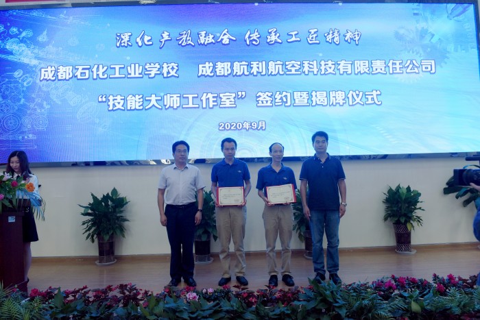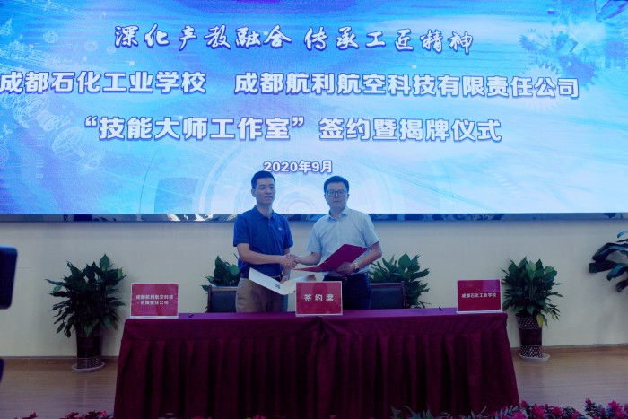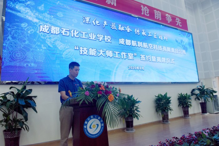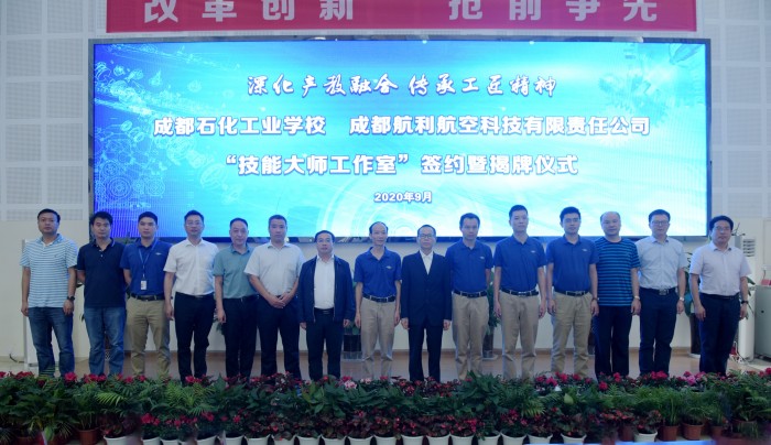 9月16日,成都石化工业学校举行了与成都航利航空科技有限责任公司联合(以下简称“成都航利”)成立数控专业“技能大师工作室”签约暨揭牌仪式。成都航利总工程师张百涛,彭州市总工会党组书记常务主席刘军,彭州市教育局党组成员、副局长王庆福,学校党委书记任传久、校长周川益等领导和嘉宾出席了签约和揭牌仪式。