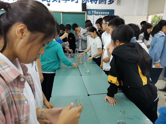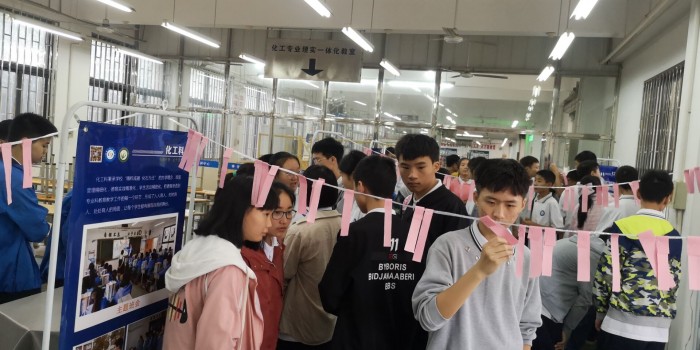 体验活动以化工实训中心与分析检测中心为载体,共设7个体验项目。新生们分别观摩了精馏实训操作,传热实训操作,体验了化学魔法秀,维生素C含量的测定,酸度的测定,化工仿真,参与了化工专业知识有奖答题项目。观摩体验活动现场热闹非凡,同学们纷纷参与其中,充分体验了专业实训的科学性与趣味性,深切感受化工专业的魅力。