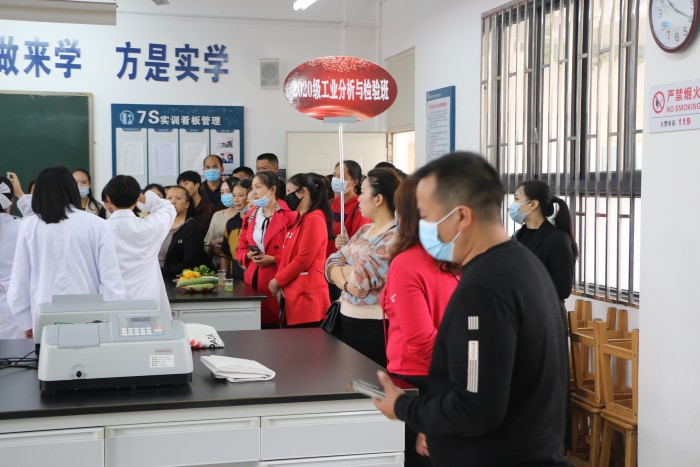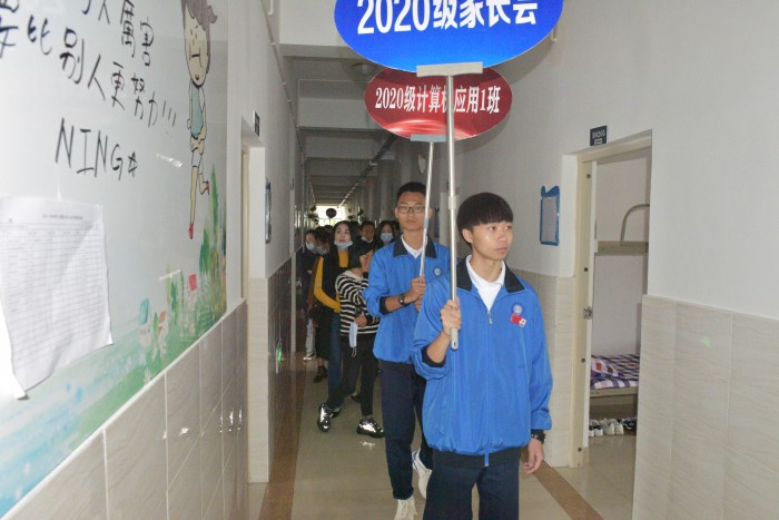 集中家长会后,在各专业科、团委学生会干部的引领下,家长们观摩了2020级学生的大课间活动,整齐的队列、响亮的口号,规范统一的军体拳和手语操《国家》,看到孩子们一个月来的完美蜕变,激动的家长们纷纷拿出手机记录下这份成长的感动。在观摩学生寝室时,家长们赞叹原本在家不注意收拾的孩子在学校生活中被子叠成了军被,鞋子和洗漱用品摆成了一条线,所住的寝室打扫得干净整洁。随后家长们参观了校园、南北校区学生创业街及各专业的各实训室,了解学校各专业办学实力和设施设备的情况。家长们纷纷表示第一次到校参观,才发现职业学校的办学理念先进、设施设备完善、对孩子在校三年的生活学习充满了信心。