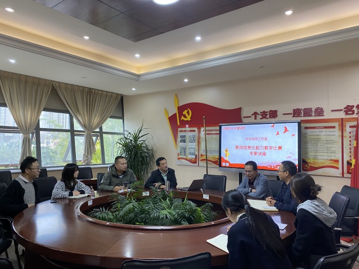 此次专题讲座邀请了四川省职业院校信息化教学指导委员会专家组成员、四川省中等职业教育信息技术一类(计算机类)专业教学指导委员会主任,首届中国职教名师、四川省特级教师、成都市名师工作室、成都市技能大师创新工作室领衔人成都工业职业技术学院龙天才副教授担任主讲。龙天才教授多年来一直从事信息化教学的推广及大赛裁判等工作,具有丰富的信息化教育教学研究和管理经验。他在今天的讲座中结合自己参与指导相关备赛工作对汽车专业教师进行了相关知识的介绍。讲座中,他以雨课堂的应用为引出,通过案例分享,弹幕回答等方式,介绍了信息化教学手段的本质,随后他回顾了2020年教学能力大赛成都市赛和四川省赛的比赛情况,指出了汽车专业开始提前着手准备该项赛事值得肯定,同时,他从信息化教学大赛的起源、内涵、教学内容,学情分析,思政要素,重难点问题,实施方法和能力培养要素等方面,深入浅出地向教师们传授了如何做好信息化教学设计、如何迅速提高教学能力的宝贵经验。