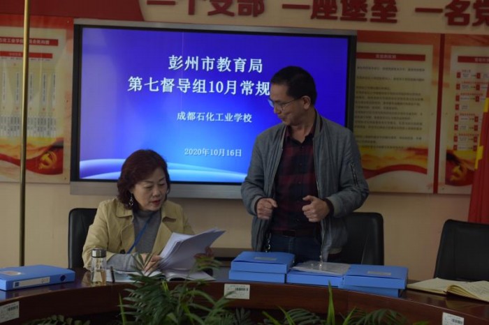 10月16日,彭州市中小学校第七责任督导组督学刘蓉、刘光富、罗光宇三位同志赴成都石化工业学校开展10月经常性督导检查。
