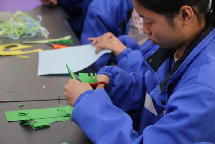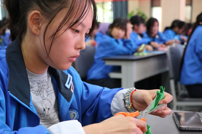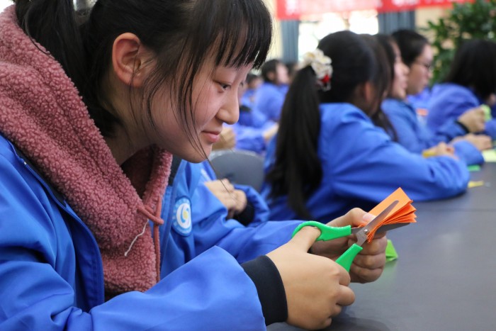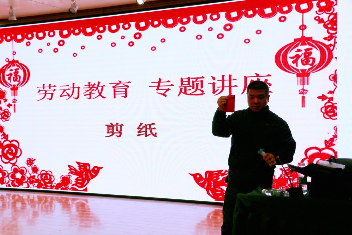 日前,成都石化工业学校积极拓展劳动教育讲堂,邀请到中国民间文艺家协会会员、四川省民间文艺家协会会员、四川省工艺美术行业协会会员、彭州市非物质文化遗产保护协会副会长、彭州市人民对外友好协会常务理事、彭州市非物质文化遗产剪纸和剪影传承人——庄丛灿到校为学前信息科学生举办剪纸专题讲座。