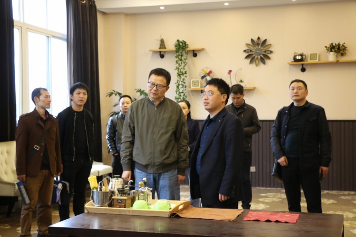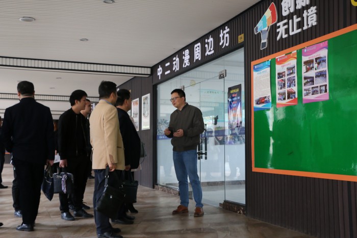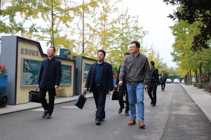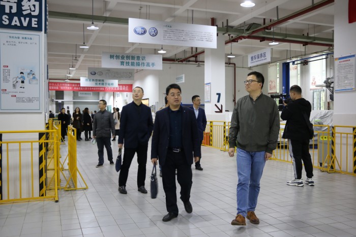 成都石化工业学校校长周川益陪同客人参观了学校的行知长廊、匠心律道、学生创业街、酒店管理专业实训中心、汽修专业实训中心等。