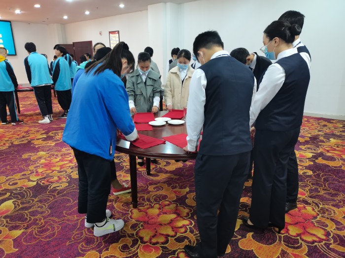 本次实训中,我校旅游专业学生进行了岗位英语、职业礼仪、语言沟通技巧、中餐摆台、景点讲解等酒店服务类岗位实训。成职院授课教师深入浅出地讲解了岗位英语应用技巧、餐饮服务考纲解读和职业礼仪服务要领,并亲自示范、细心纠正。虽然一天下来很辛苦,但大家对本专业职业能力要求有了更深的了解,为他们接下来的高三复习和训练指引了方向。