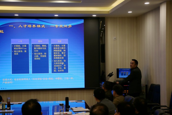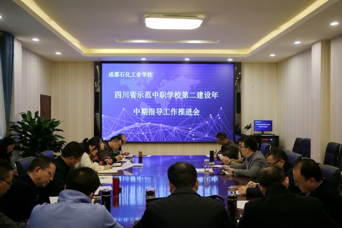 为加快推进省示范校建设工作,11月3日,成都石化工业学校在北校区召开了省示范校第二建设年中期指导工作推进会,学校各部门、各科室、各专业科、各项目负责人和主要参与建设工作的教师50余人参会。