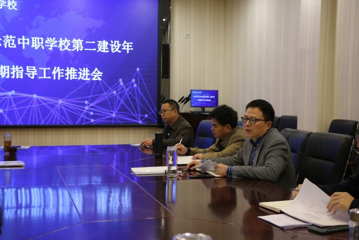 会议听取六个专业科科长、六个子项目负责人就项目推进及完成情况的工作汇报;副校长刘遵勇就促进产教深度融合、推进专业特色发展的实施作具体要求;副校长罗光宇就中期指导佐证资料的撰写、编制、归档、上传及相关接待工作进行的具体安排。校长周川益对建设工作指出:所有项目建设要做好顶层设计,从上到下科学规划实施;要结合省示范校建设任务书的要求,对照专家第一建设年中期指导的整改要求,全面提高建设质量,实现提升发展;经费使用要按预算实施,做到合法合规,有理有据。同时他还对省示范校第二建设年中期指导的各项准备工作强调:第一、要明确各自职责,按时完成相应工作;第二、认真完成第二建设年总结汇报材料及六个子项目汇报材料的撰写工作;第三、重大项目建设实施必须经过党委审批;第四、梳理建设成果及创新经验,形成学校建设特色;第五、按学校省示范校工作进度表,提高资金使用率和建设任务完成率,确保全面完成第二建设年的资金使用和建设任务。