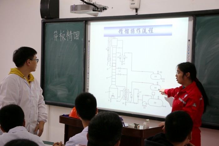 在本次教研活动中,首先由成都石化工业学校黎海霞老师献上了精心准备的专业课“筛板精馏”。她以“项目教学法”引导各小组学生学生通过制定计划,实施计划、检查评估系列程序,完成教学任务,学生的学习兴趣和专注度在老师的激发下保持得非常高,产生了良好的教学效果。评课环节,黎海霞教师对本节课的教学设计进行了阐释,分析了自己采用的教学方法如何突破知识的重难点。彭州市教育局教研室职教教研员肖安华老师及与会教师对黎教师的课进行了点评。黎海霞老师在本次课程教学中展示的化学工艺专业教学模式改革教学成果,贴近专业实际,受到与会老师们的纷纷好评。