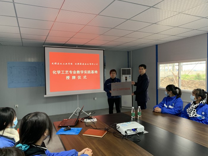 11月25日上午,成都石化工业学?!盎Чひ兆ㄒ到萄导亍笔谂埔鞘皆诔啥缄稍词邢薰净嵋槭页晒傩小3啥缄稍词邢薰咀芫碇碚岳隼?,成都石化工业学校副校长刘遵勇、化工科相关负责同志以及化学工艺专业学生代表参加了授牌仪式。