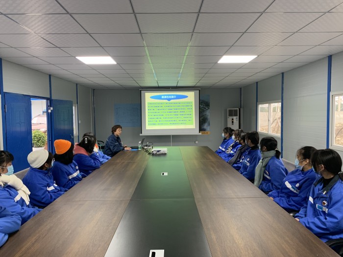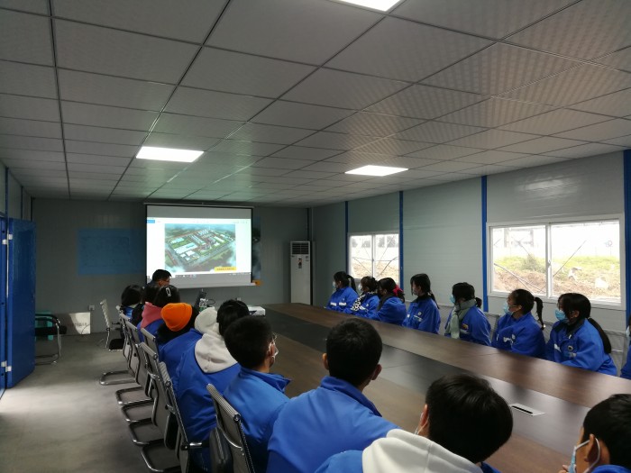 公司生产总工程师李家庆介绍了公司项目建设情况,并结合裂解汽油制苯乙烯、C9综合利用及丁辛醇副产物综合利用项目的工艺及设备,企业对员工的安全与素养要求等方面与同学们作了分享。