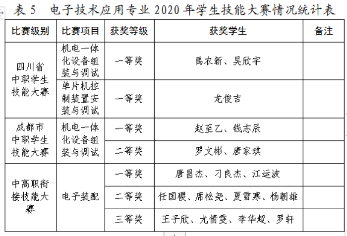 在一年多的改革探索和教学实践中,电子技术应用专业师生始终以高标准、高水平、高质量要求自己,在学生专业成长过程中,克服重重困难,努力提升专业技能水平,各级各类比赛中的累累硕果也见证着他们的成长和专业建设的成果。在11月21日举行的“成都市中高职衔接技能大赛”中,我校2018级15名学生参赛,取得了3个一等奖、4个二等奖、4个三等奖的好成绩;在12月1日结束的2020年成都市中职学生技能大赛“机电一体化设备组装与调试”赛项比赛中,再次交出优异答卷:两支参赛队分别以第二名和第四名的友谊成绩,荣获一等奖和二等奖。