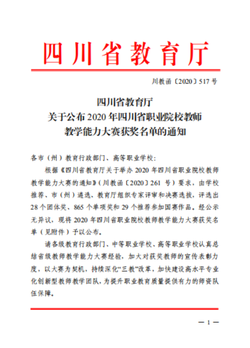2020年9月26日,中等职业学校教师教学能力比赛决赛在成都市中和职业中学落下帷幕。我校电子技术应用专业参赛教师团队经过与众多兄弟学校参赛队的激烈角逐,喜获四川省三等奖、成都市二等奖。