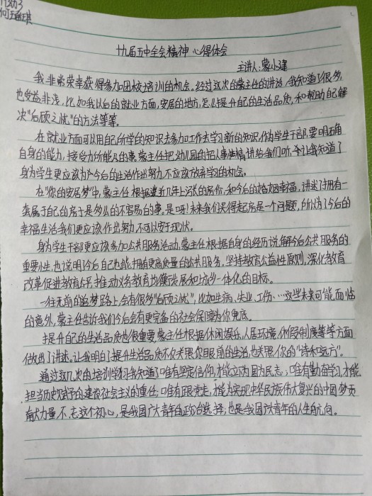 通过此次主题学习活动,成都石化工业学校团员青年深感责任重大、使命光荣,站在“两个一百年”奋斗目标的历史交汇点上,肩负新的时代使命,青年团员们将自觉把思想和行动统一到全会精神上来,把智慧和力量凝聚到推动“十四五”时期经济社会发展上来,努力做“十四五”时期的奋进者、开拓者、建设者,为推动新时代社会发展和地方经济腾飞贡献青春力量。