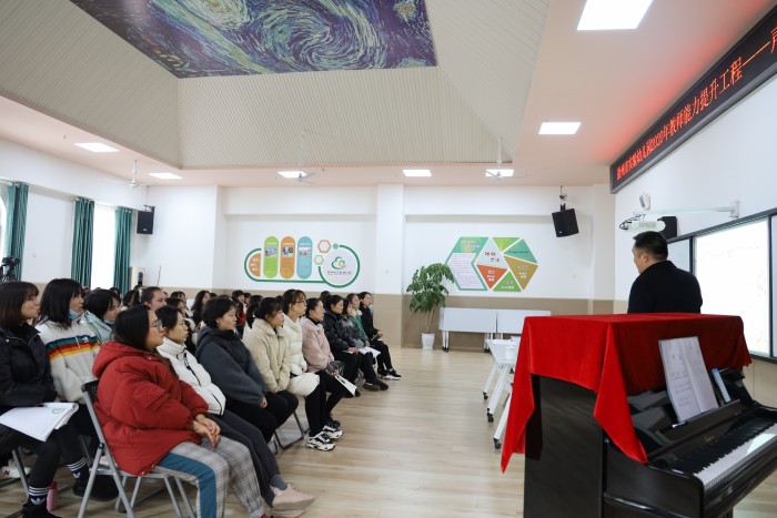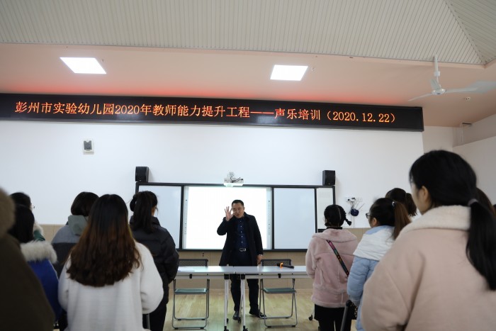12月22日,成都石化工业学校学前信息科科长、专业课教师杨志强和陈佳佳老师分别到彭州市实验幼儿园和学海湖幼儿园,给幼儿园老师们带去了一场声乐培训和幼儿园环境创设培训。