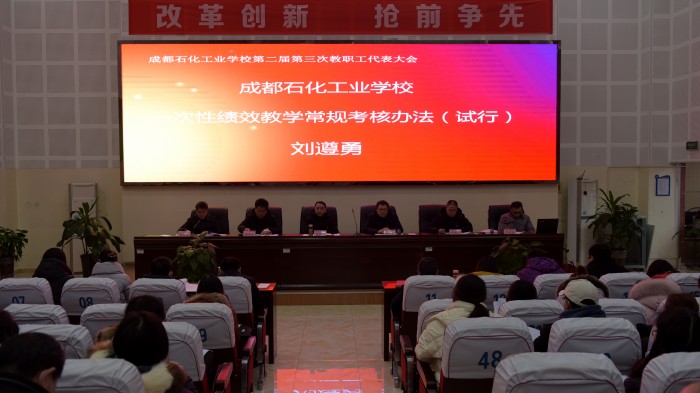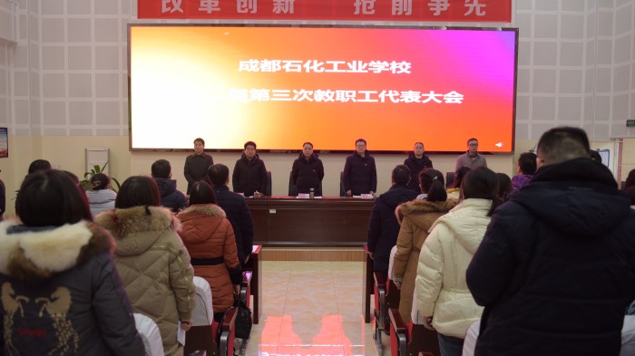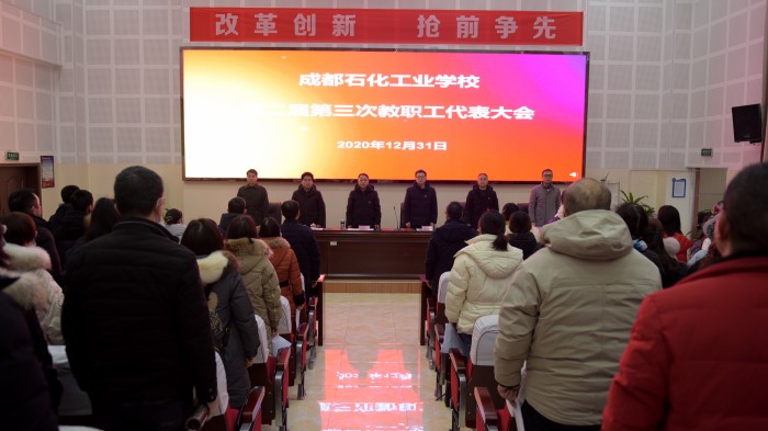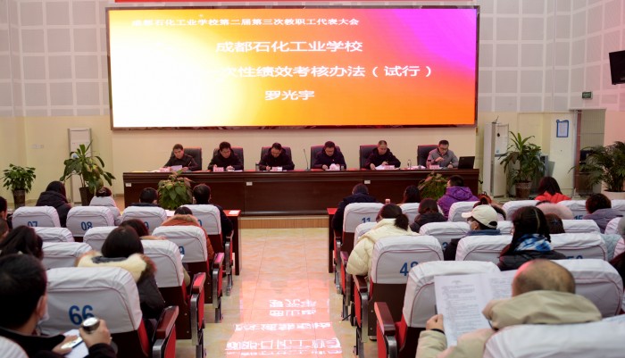 12月31日,成都石化工业学校第二届教职工代表大会第三次会议在南校区第一会议室召开?;嵋橛裳5澄笔榧恰⒐せ嶂飨魏樵浦鞒?,全体教职工代表出席会议,非教职工代表的行政干部、民主党派人士、“两代表一委员”列席本次会议。