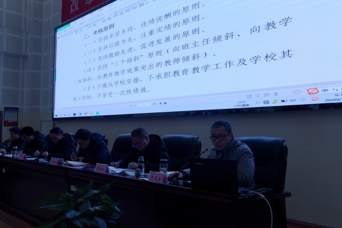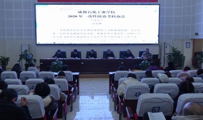 第一项议程,党委委员、副校长罗光宇就《成都石化工业学校2020年一次性绩效考核办法(试行)讨论稿》作具体说明。