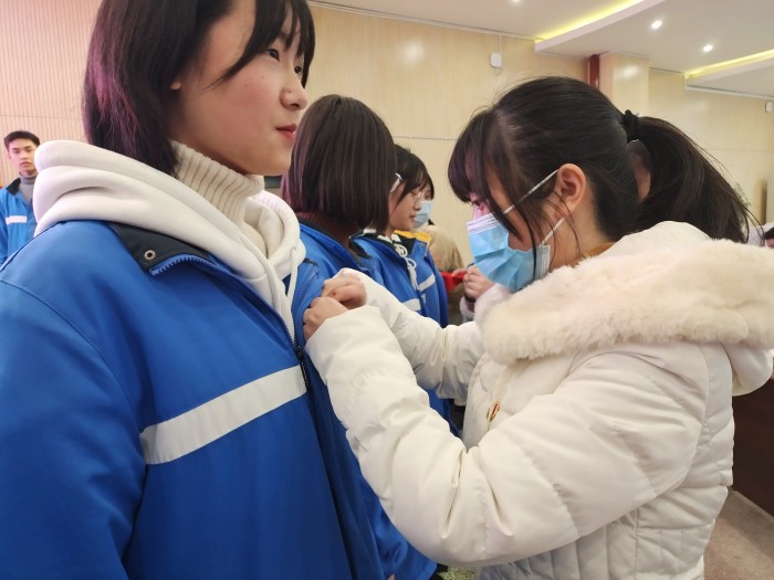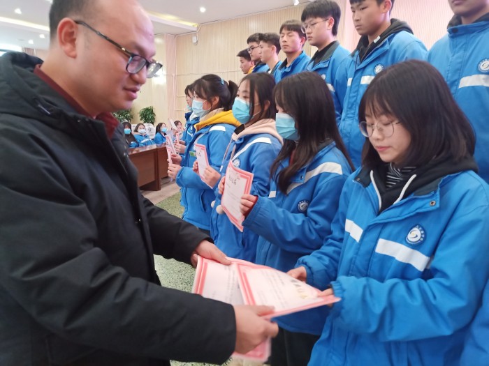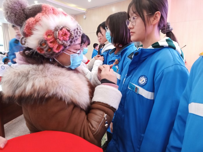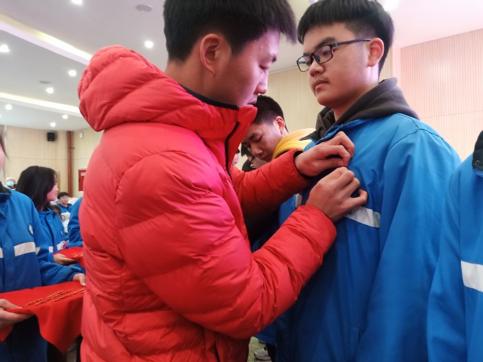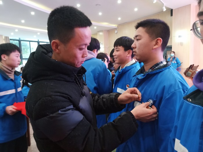 校团委书记、政教处主任蒙小建在典礼上宣读了2020年下半年新发展团员批准决定,并为通过考核的232位学员颁发结业证书,10位党员教师为新团员佩戴上鲜艳的团徽。仪式最后,新团员代表2019级计算机4班杨俊霏带领全体新团员面向团旗庄严宣誓。