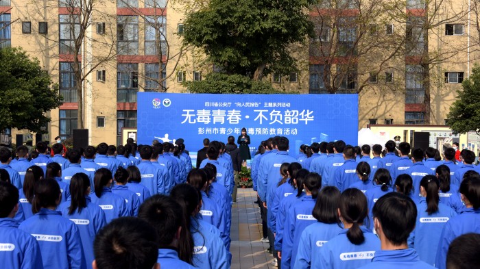 为迎接首个“中国人民警察节”的到来,1月5日,四川省公安厅“向人民报告”主题系列宣传活动之“无毒青春.不负韶华”彭州市青少年禁毒预防教育活动在我校成功举行。我校作为禁毒预防教育活动直播报导现场,在疫情防控不松懈的形势下,采用网络直播+现场授课的形式,面向全市中小学生开展了一场别开生面的禁毒预防教育进校园活动。此次活动由四川省公安厅主办,彭州市禁毒办、彭州市公安局、彭州市教育局承办,彭州市司法局、共青团彭州市委、成都石化工业学校、彭州市融媒体中心、封面新闻协办。
