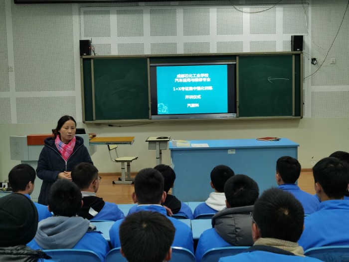 为了加快推进“1+X”证书制度的落地实施,日前,成都石化工业学校汽修专业举行了“1+X”强化培训开训仪式。通过学生报名,专业教师考核,该科遴选出2018级、2019级优秀学生参加汽车运用与维修专业汽车转向悬架与制动安全系统技术证书试考。