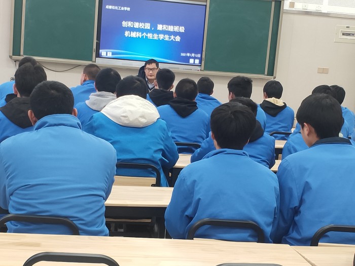 1月12日中午,我校机械科在107会议室召开本学期机械科个性生学生大会。机械科德育副科长、全体机械科个性生参加会议。