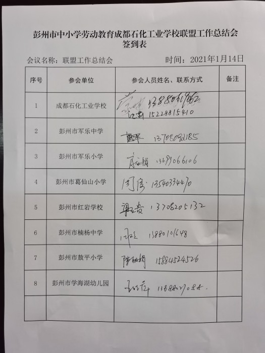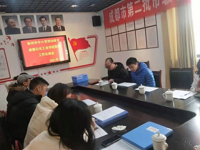 1月14日,彭州市中小学劳动教育成都石化工业学校联盟在彭州市军乐中学召开工作总结会,会议学习贯彻国家、省、市关于加强新时代大中小学劳动教育的文件精神,研究部署下一阶段联盟中小学劳动教育工作,会议由成都石化工业学校政教处主任蒙小建主持。