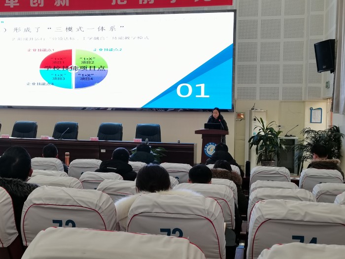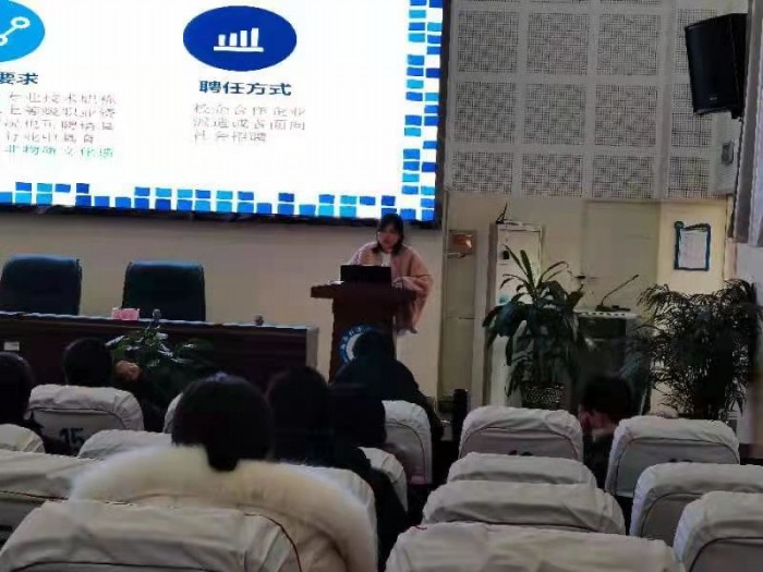 会上,招就处主任杨旭汇报了建立校企合作长效机制、校企共建标准体系、校企共建产教融合平台载体、产教协同育人情况;