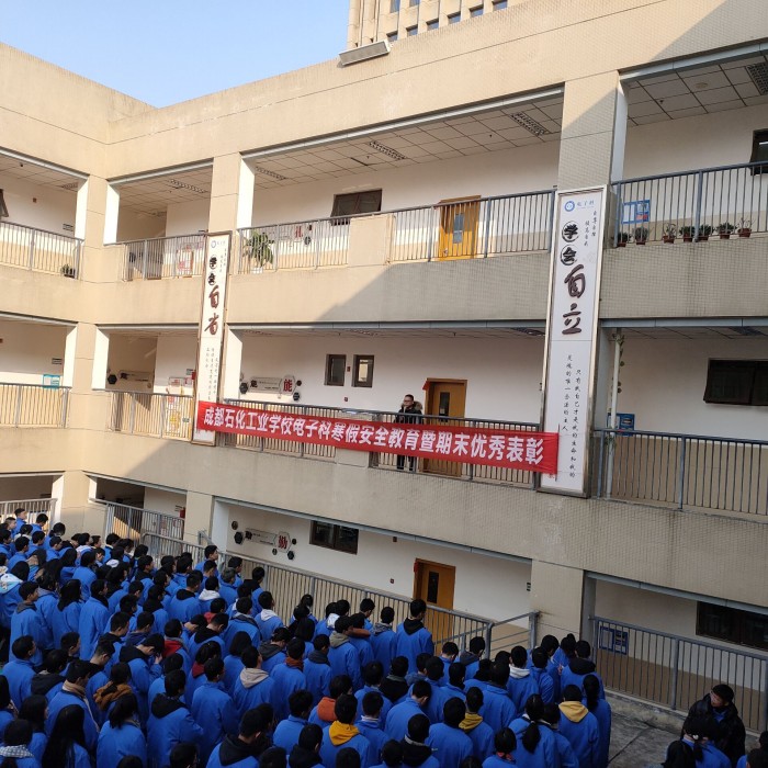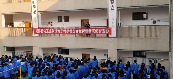 1月13日,成都石化工业学校电子科组织学生开展了寒假安全教育以及期末优秀表彰活动。