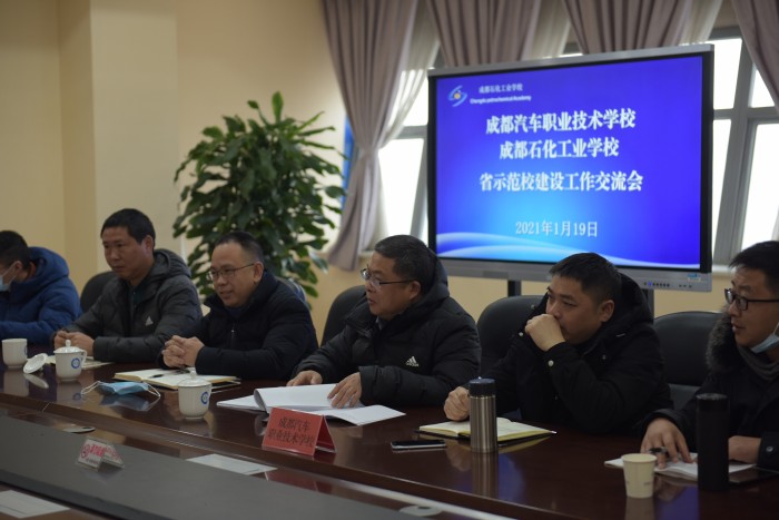 为进一步推进四川省示范中等职业学校建设,落实国家职业教育改革实施方案,培养紧贴产业发展的“匠心”人才,2021年1月19日,成都现代制造职业技术学校副校长张化兵、游功俊等12人与成都汽车职业技术学校副校长毛洪斌等8人来到成都石化工业学校南校区,以“深化产教融合”为主题,进行多校参与的互动交流。