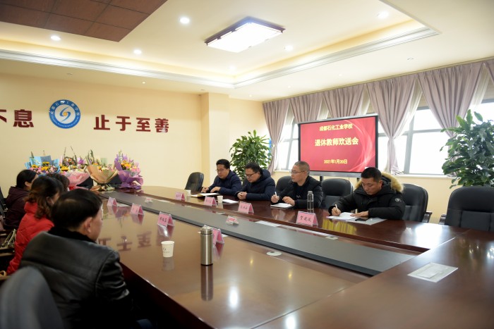 为体现“尊重知识、尊重人才”的优良文化,感谢和欢送为学校作出贡献的退休教师,日前,成都石化工业学校在南校区第三会议室召开了退休教师欢送会,欢送2020年退休的四位教师。学校党委委员、校长周川益,党委副书记段洪云,党委委员、副校长黎定成参加了本次欢送会?;端突嵊傻澄笔榧嵌魏樵仆局鞒?。