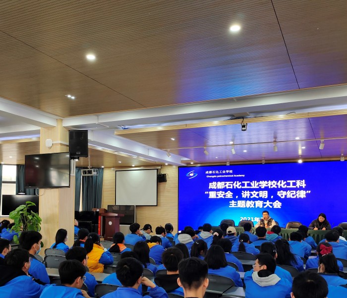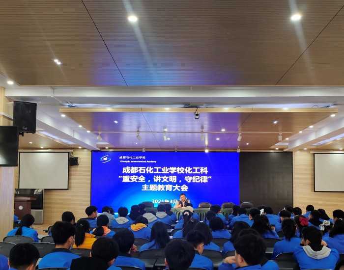 为落实“立德树人”根本任务,3月3日中午,成都石化工业学校化工科在北校区多功能厅召开了“重安全,讲文明,守纪律”主题教育大会,该科2019级、2020级全体学生参加了会议。
